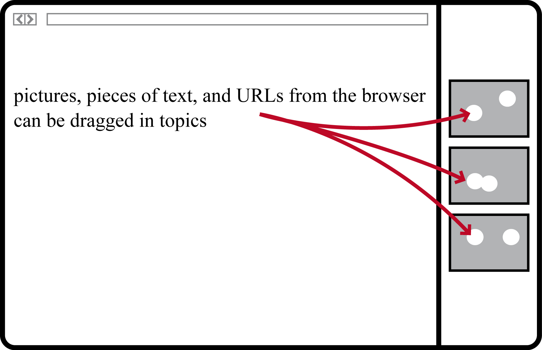 Getting a Picture of Your Thoughts: Interactive Visualization for Creative Work, 8th ACM Conference on Creativity and Cognition, Graduate Student Symposium, Atlanta, Georgia, USA. Using affordances of materials from daily life for interaction design, talk in German (Nutzung inhärenter Interaktionsangebote von Substanzen des Alltags), workshop Be-greifbare Interkation (Tangible Interaction), Mensch & Computer 2011, Chemnitz, Germany. An Interface for Visual Information-Gathering During Web Browsing Sessions: BrainDump - A Versatile Visual Workspace for Memorizing and Organizing Information, Fourth International Conference on Advances in Computer-Human Interactions, Le Gosier, France, 2011. |